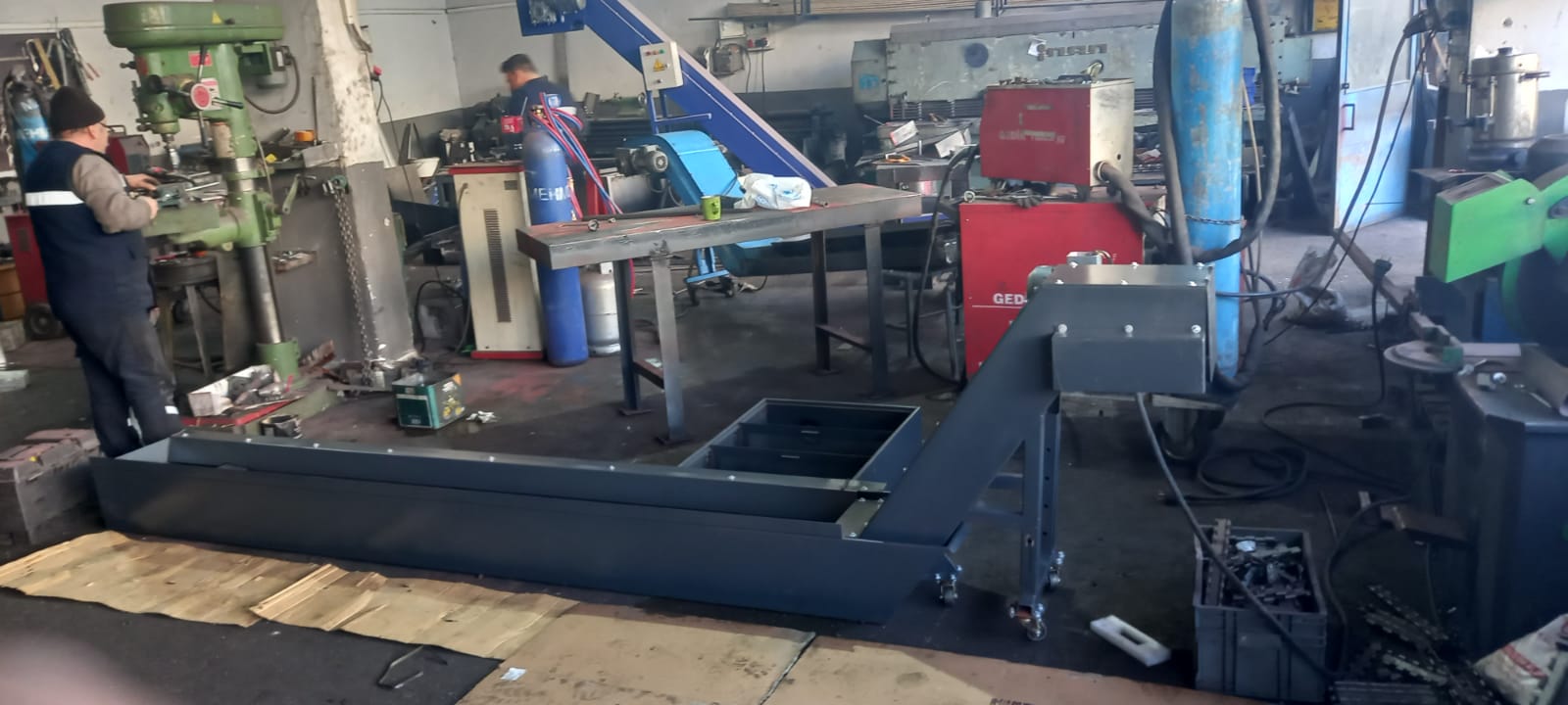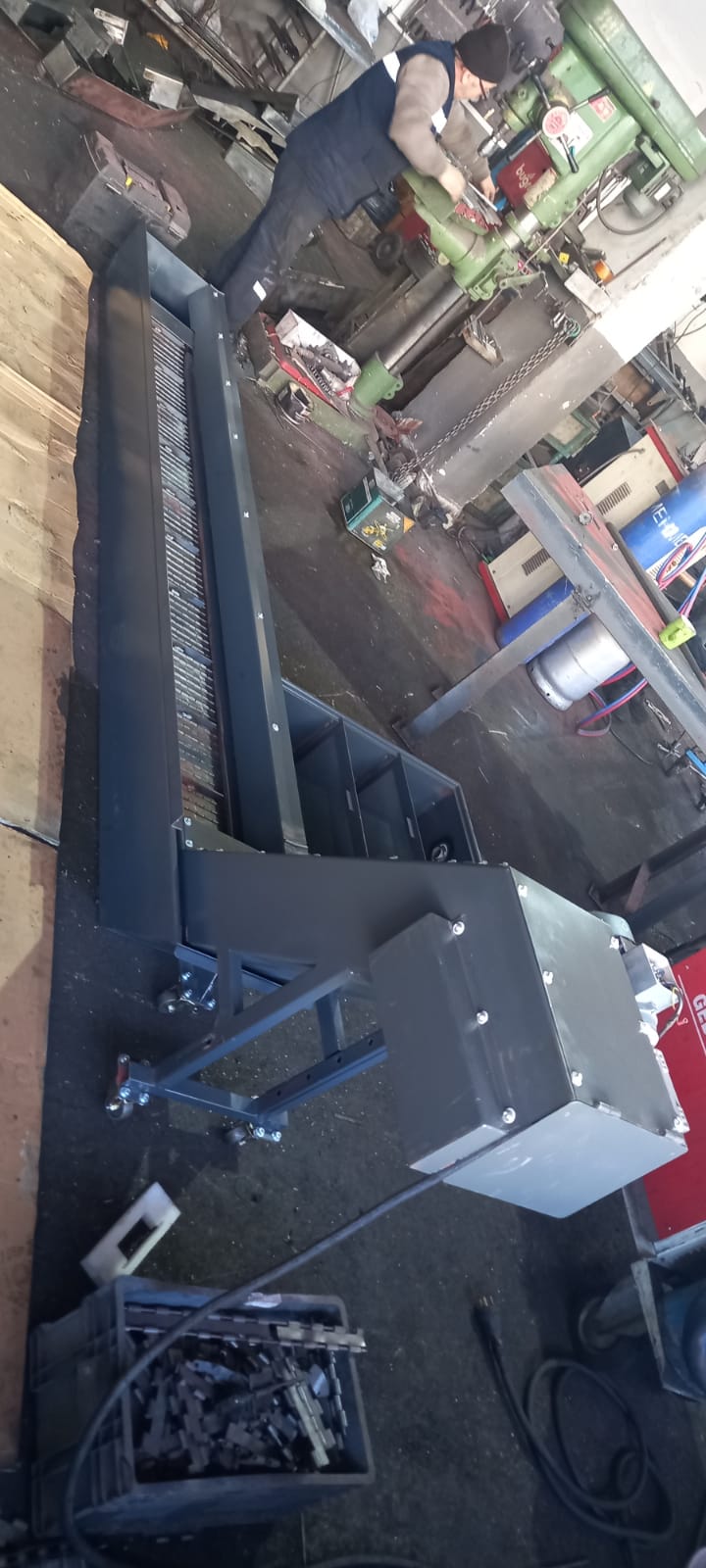 Bu konveyör transmisyon çeliği, imalat çeliği, alüminyum ve alaşımları v.b. metaller ile teflon ve derlin gibi plastik malzemelerden çıkan kaba talaş ve orta kaba talaşların soğutma/kesme sıvısından ayrıştırılarak tezgâhın dışına taşınmasında kullanılan konveyörlerdir. Çelik paletli konveyörler, istenilen açı ve ölçülerde ve de talaş taşıma kapasitesine göre imal edilebilir. Konveyör enerji beslemesi dış hattan alınabileceği gibi tezgah enerji ünitesinden de alınabilir.